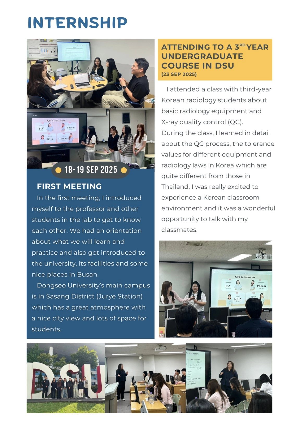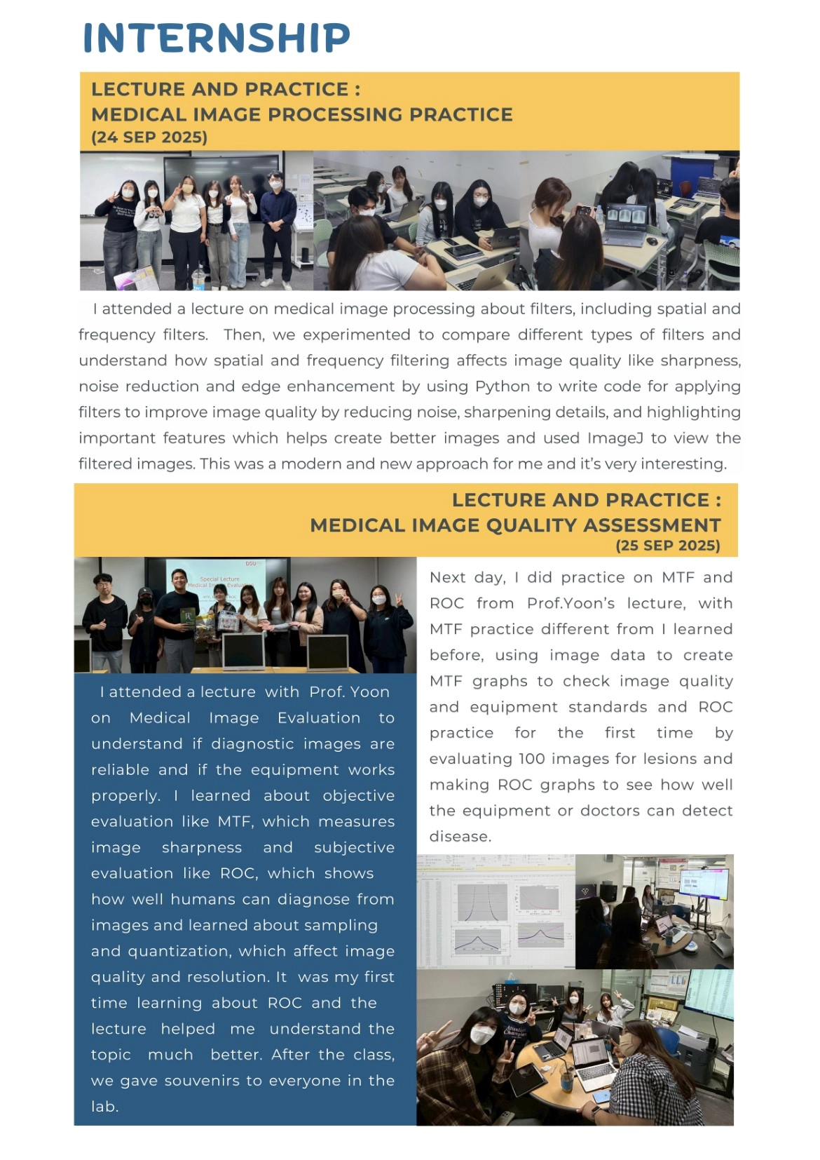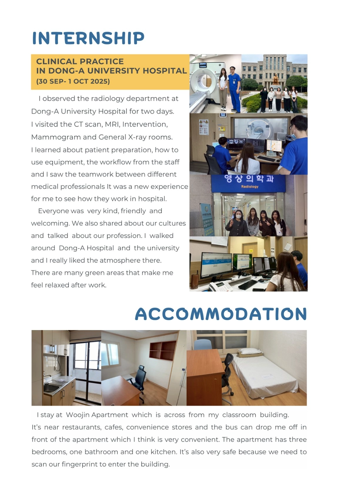 “Studying alongside Korean students helped me appreciate different approaches to radiological technology. It also strengthened my confidence in communicating and learning in an international environment.”