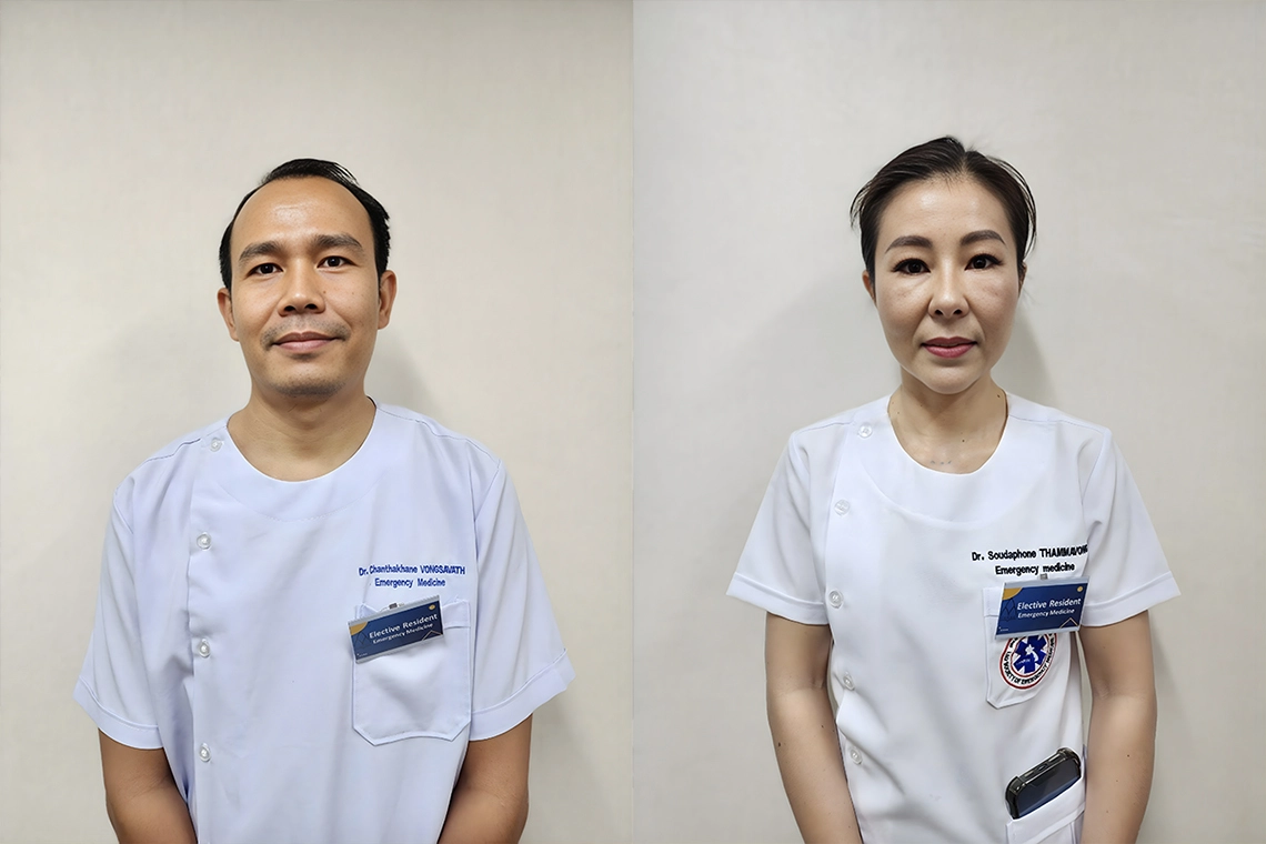 On November 3, 2025, the Faculty of Medicine, Khon Kaen University (KKU), warmly welcomed Dr. Chanthakhane VONGSAVATH and Dr. Soudaphone THAMMAVONG, medical residents from the University of Health Sciences, Lao PDR, who joined an elective program in Emergency Medicine from November 3–28, 2025.