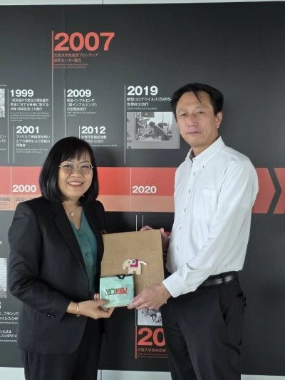 คณะผู้แทนได้รับการต้อนรับอย่างอบอุ่นจาก Prof. Yoshiharu Matsuura อดีตผู้อำนวยการ CiDER และ RIMD ปัจจุบันดำรงตำแหน่งศาสตราจารย์พิเศษด้านไวรัสวิทยา และหัวหน้าห้องปฏิบัติการ Virus Control และ Assoc. Prof. Shota Nakamura จาก Department of Infection Metagenomics, Genome Information Research Center