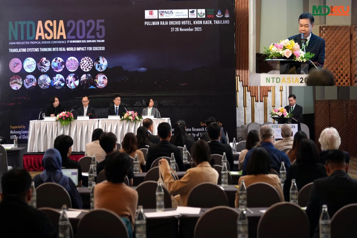 On November 27, 2025, the Faculty of Medicine, Khon Kaen University, through the Department of Tropical Medicine, hosted the Asian Neglected Tropical Disease Conference (NTDASIA) 2025 under the theme “Translating Systems Thinking into Real-World Impact for SDG 2030.” The conference was held at Pullman Hotel, Khon Kaen Province, and was officially opened by Assoc. Prof. Charnchai Panthongviriyakul, President, Khon Kaen University. The event aims to drive the application of systems thinking to practical solutions for addressing neglected tropical diseases (NTDs) and enhancing health security across the Asia region.