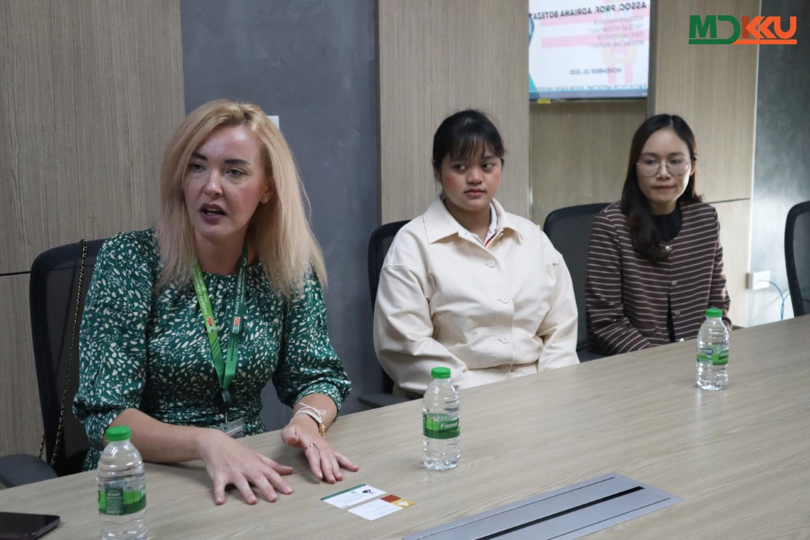 On 20 November 2025, the Faculty of Medicine, Khon Kaen University, warmly welcomed Assoc. Prof. Adriana Botezatu, an internal medicine specialist from Nicolae Testemitanu State University of Medicine and Pharmacy, Republic of Moldova, on the occasion of her visit and courtesy meeting with the faculty’s administrators. The purpose of the visit was to explore opportunities for enhancing academic cooperation between the two institutions.