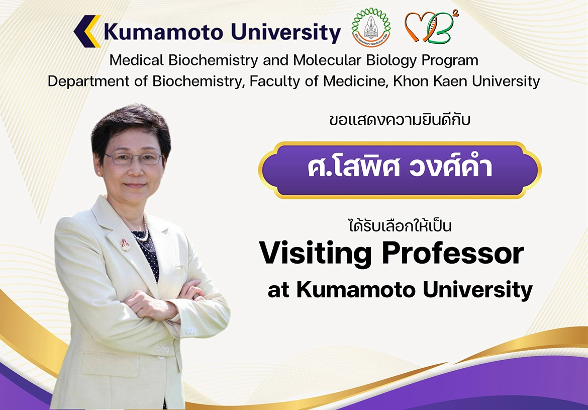 The Faculty of Medicine, Khon Kaen University, extends its congratulations to faculty members from the Biochemistry discipline on their appointment as Visiting Professors at Kumamoto University, Japan: