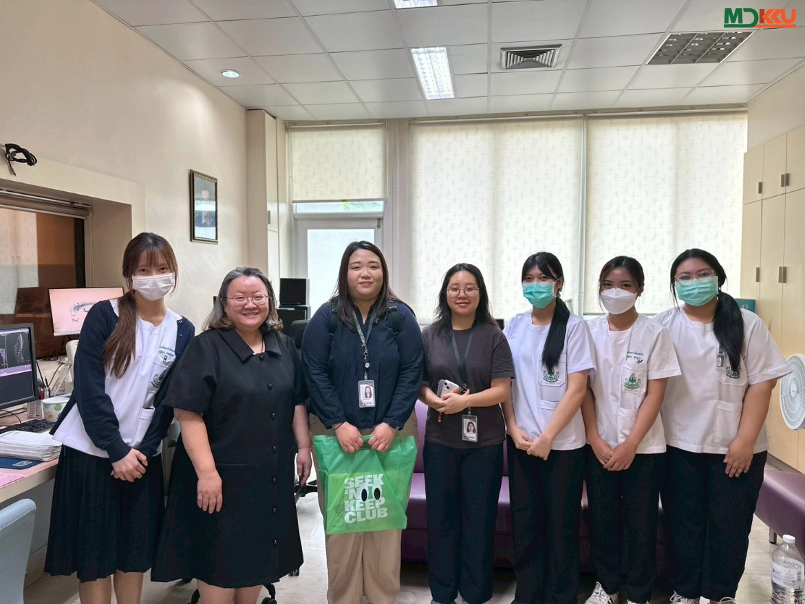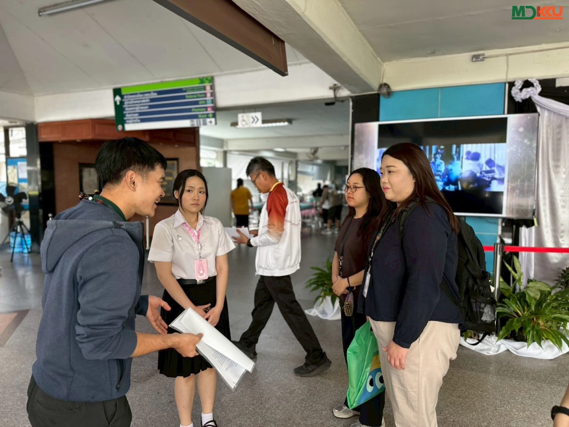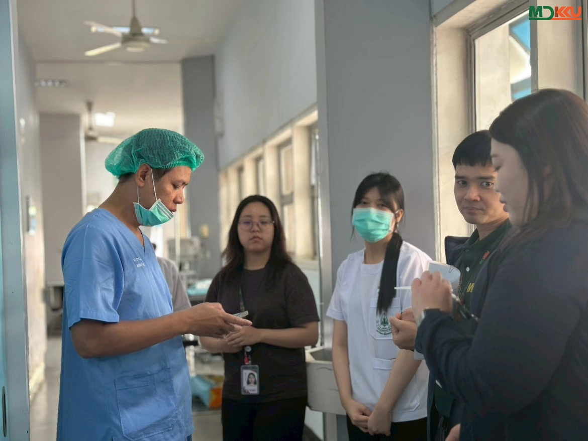 The first day of the program began with an orientation session organized by the International Relations Office, Faculty of Medicine, aimed at helping the exchange students adjust and prepare before commencing their training in the department. In the morning session, the students were introduced to Khon Kaen University, the Faculty of Medicine, and the academic program through an introductory video presentation. They also received basic Thai language instruction for daily communication, along with guidance on campus navigation and a tour of key facilities within the Faculty, including academic units, the library, the cafeteria, and various clinical units.