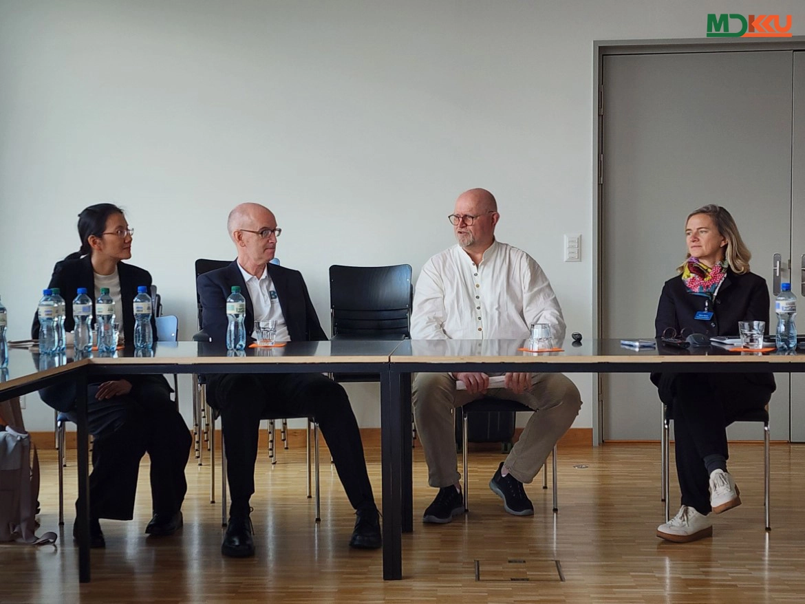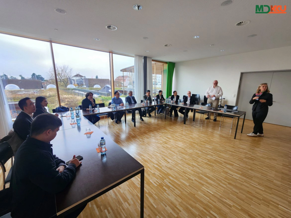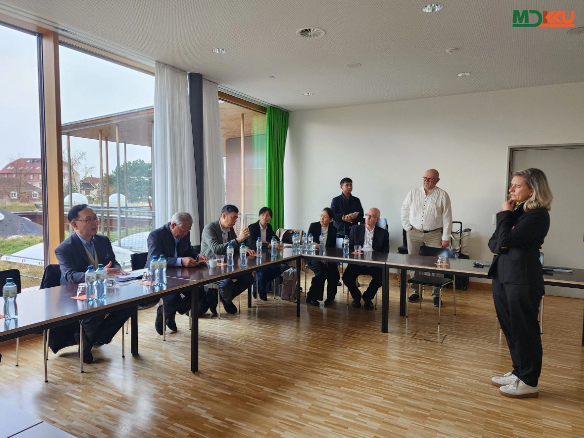 ระหว่างการเยือน คณะผู้บริหาร มข. เข้าร่วมการประชุมหารือกับ Prof. Dr. med. Christian Kätterer ผู้เชี่ยวชาญด้านระบบประสาทและที่ปรึกษาด้านการฟื้นฟูสมรรถภาพทางประสาทของ REHAB Basel และ Mrs. Katrin Burow เจ้าหน้าที่ประชาสัมพันธ์ โดย Prof. Dr. med. Christian Kätterer ได้นำเสนอการบริหารจัดการและแนวทางการให้บริการของ REHAB Basel พร้อมนำคณะผู้บริหาร มข. ชมระบบการบริการทางการแพทย์แบบ Patient-Centered Care ซึ่งมุ่งเน้นฟื้นฟูสมรรถภาพทั้งร่างกายและจิตใจของผู้ป่วย