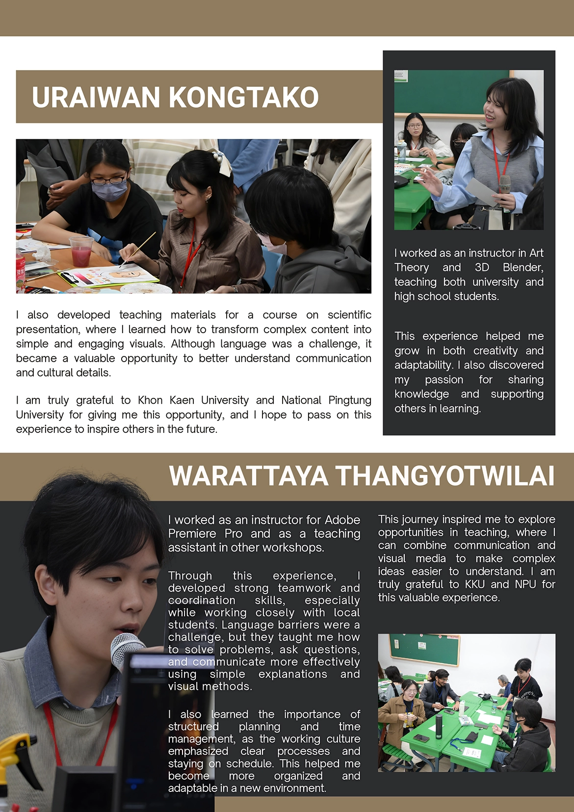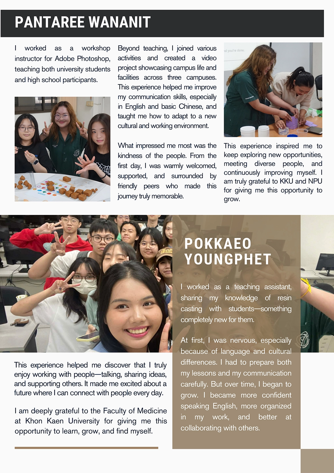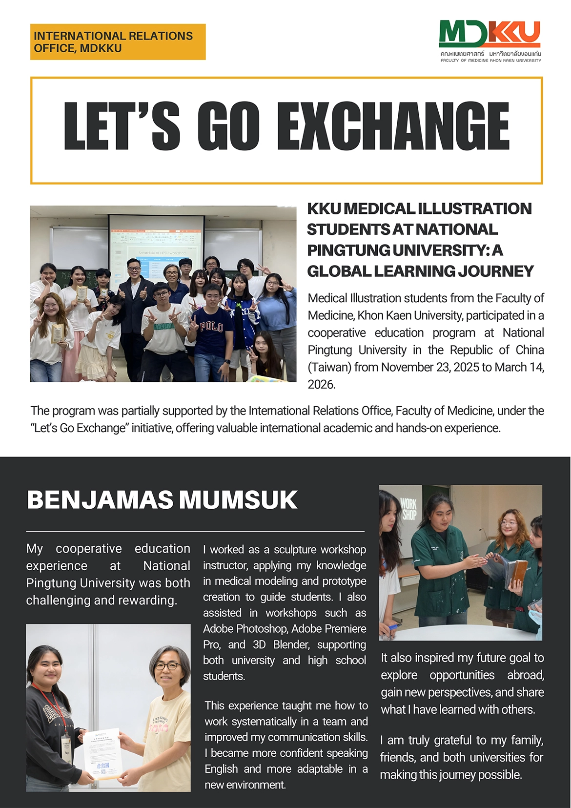 Students from the Medical Illustration program, Faculty of Medicine, Khon Kaen University—Miss Benjamas Mumsuk, Miss Uraiwan Kongtako, Miss Pokkaeo Youngphet, Miss Pantaree Wananit, and Miss Warattaya Thangyotwilai—participated in a cooperative education program at National Pingtung University in the Republic of China (Taiwan) from 23 November 2025 to 14 March 2026.