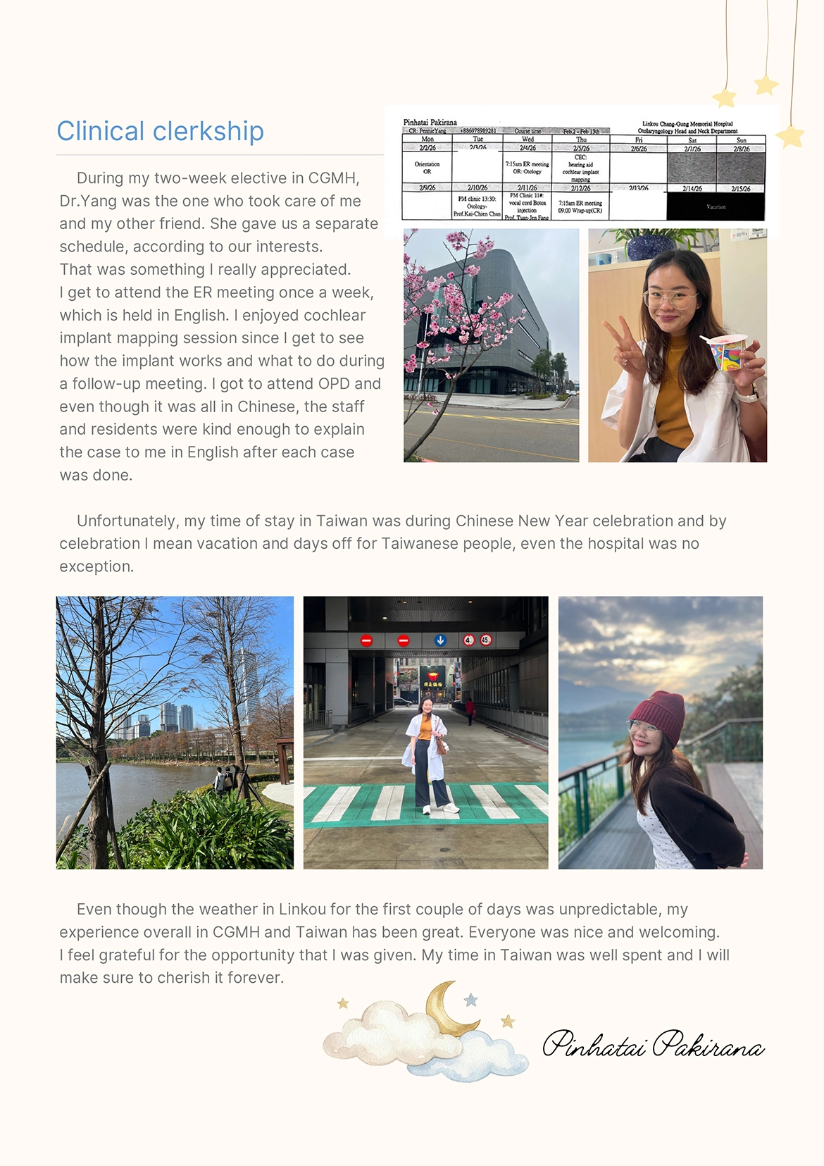 This elective experience not only enhanced my clinical skills but also allowed me to gain valuable insights into an international healthcare system, making it a truly memorable and meaningful journey.”
