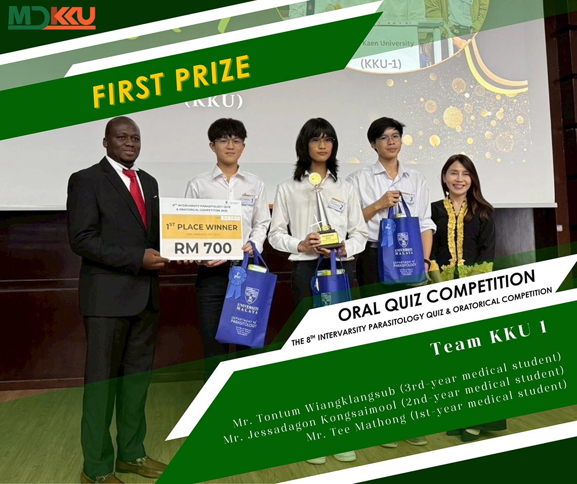 These remarkable achievements highlight the academic strength and global competency of KKU medical students. They also reflect the Faculty’s continuous efforts to promote high-quality education, critical thinking, and international engagement in medical science.