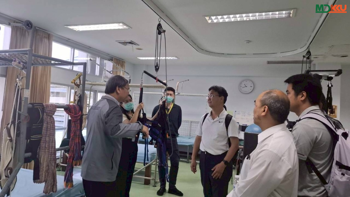 จากนั้น คณะผู้บริหารและบุคลากรได้นำ Professor Yano เยี่ยมชมหน่วยงานภายในสาขา ได้แก่ ห้องปฏิบัติการ หอผู้ป่วยเวชศาสตร์ฟื้นฟู ห้องกายภาพบำบัด และห้องกิจกรรมบำบัด เพื่อแลกเปลี่ยนประสบการณ์ด้านการดูแลผู้ป่วย รวมถึงแนวทางการบูรณาการเทคโนโลยีเข้ากับกระบวนการฟื้นฟูสมรรถภาพอย่างเป็นระบบ