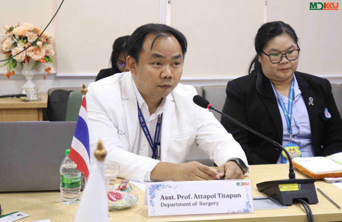 Asst. Prof. Attapol Titapun presented recent academic progress on disease causes, prevention strategies, and proactive treatment approaches, highlighting the importance of early detection to reduce disease severity and improve treatment outcomes. The meeting also included discussions on risk reduction, the application of research findings to patient care, and the development of screening systems targeting high-risk populations in areas with high disease incidence.