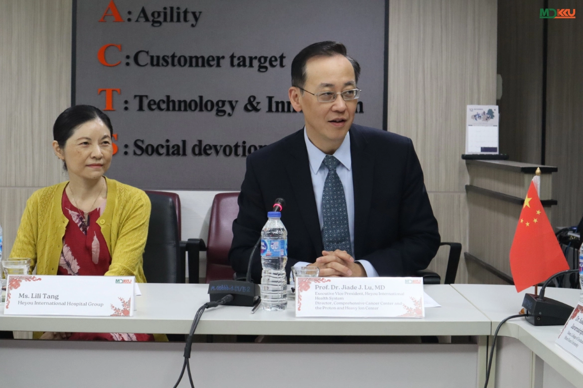 ระหว่างการประชุม Prof. Dr. Jiade J. Lu ได้นำเสนอศักยภาพของ Heyou International Hospital Group ซึ่งเป็นกลุ่มโรงพยาบาลเอกชนของจีนที่มีความเชี่ยวชาญด้านการรักษามะเร็งด้วยรังสีขั้นสูง และการแพทย์แม่นยำ ควบคู่กับการพัฒนาระบบบริการและการบริหารจัดการโรงพยาบาลสมัยใหม่ เพื่อยกระดับผลลัพธ์การรักษาผู้ป่วย