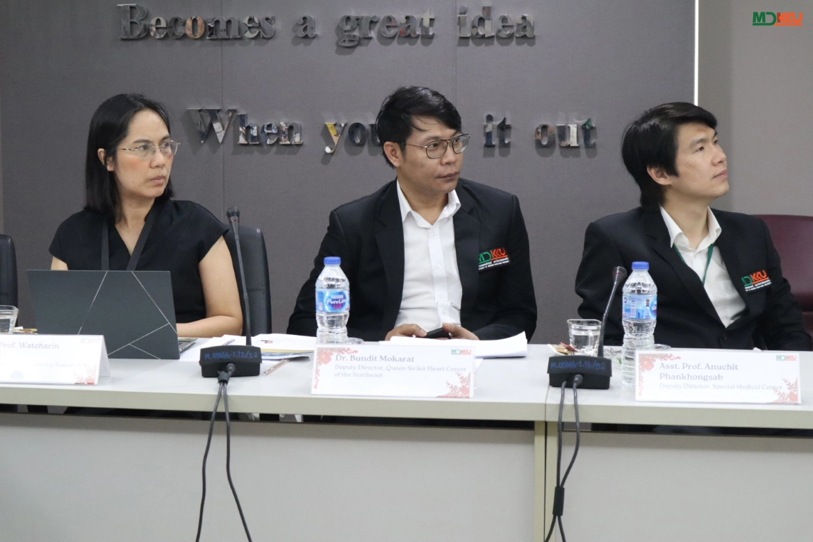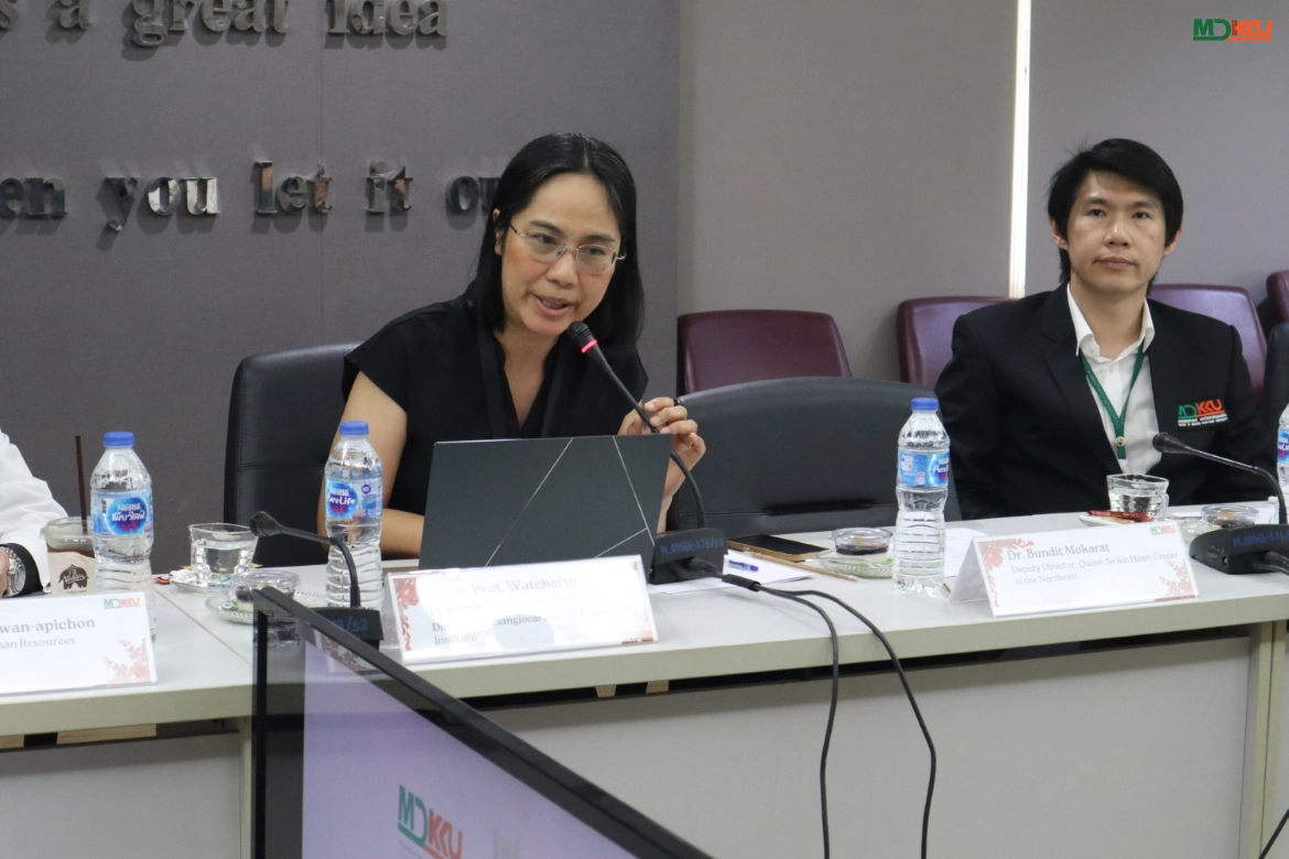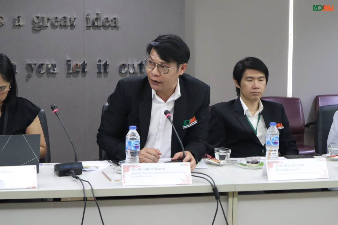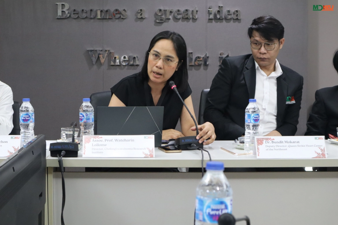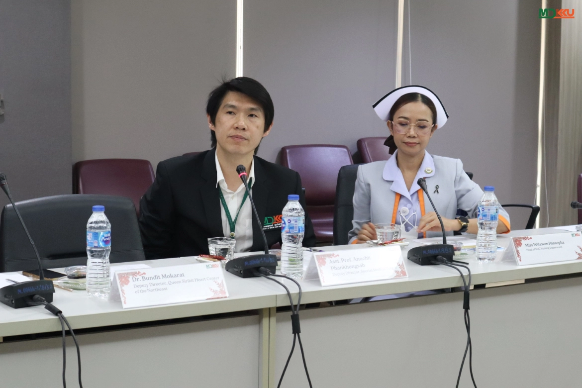Representing MDKKU, Assoc. Prof. Dr. Watcharin Loilome presented the “CARI Integrated Project,” a comprehensive care model for Cholangiocarcinoma covering screening, diagnosis, treatment, and follow-up. This model integrates local healthcare networks to reduce the disease burden. Simultaneously, Dr. Bandit Mokarat showcased the potential of the Queen Sirikit Heart Center of the Northeast, a tertiary cardiovascular specialty center, discussing management strategies for high-volume patient care.