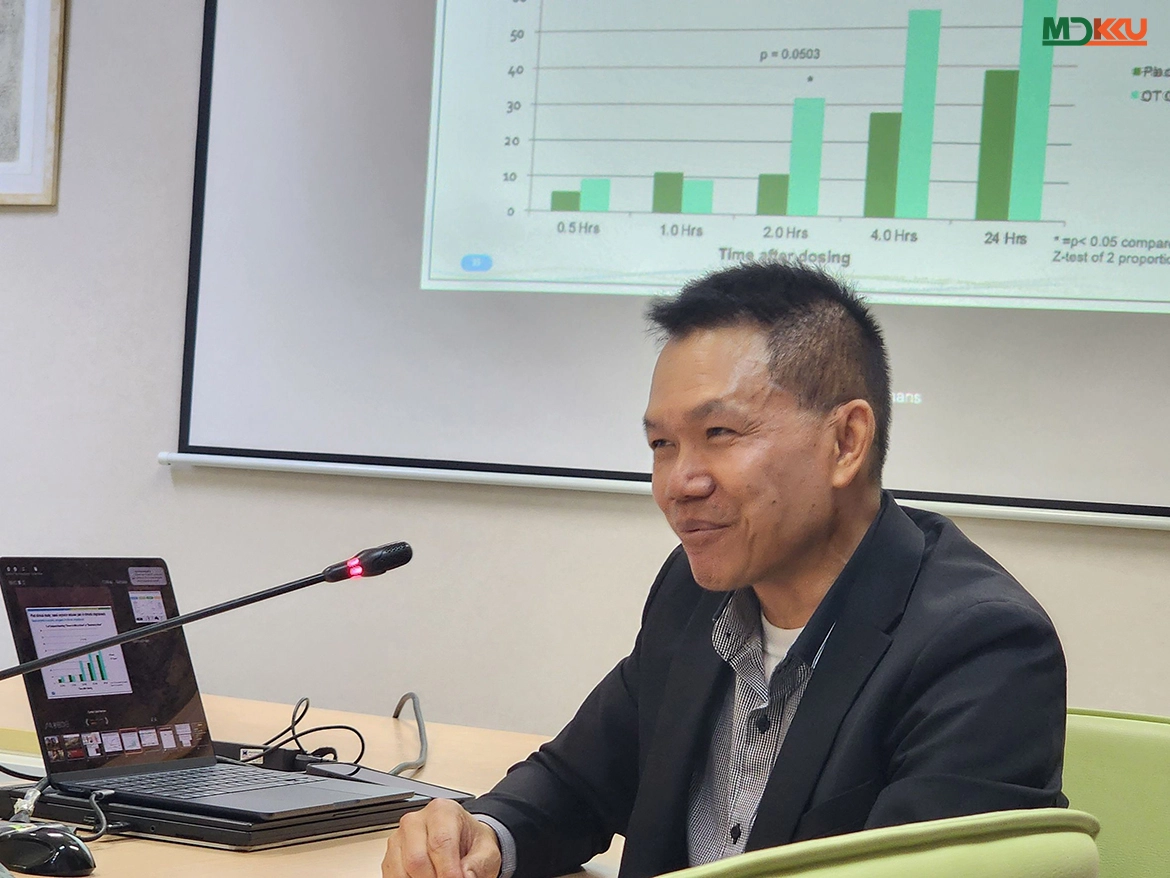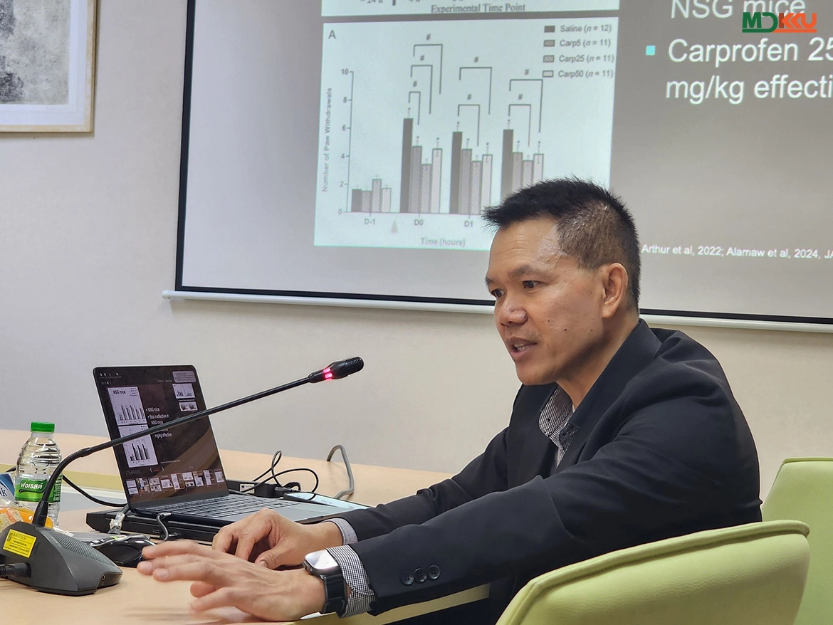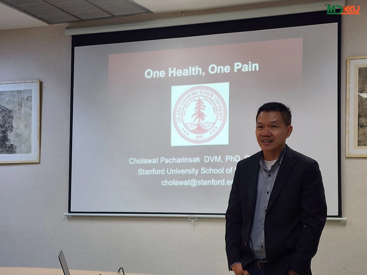 In addition to the collaborative discussion, Professor Cholawat Pacharinsak delivered a special lecture entitled “One Health, One Pain: A Collaborative Model for Translational Analgesia” to faculty members, physicians, veterinarians, and researchers at Khon Kaen University. The lecture attracted strong interest from participants and highlighted the importance of integrating knowledge in human and animal health to advance both research and clinical care more effectively.